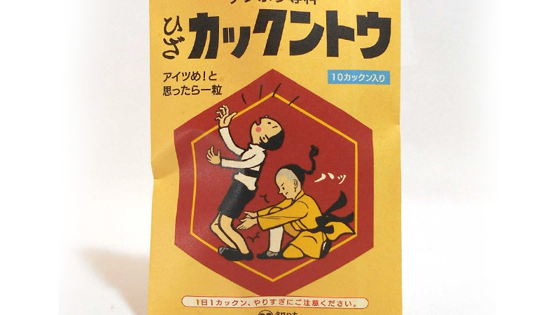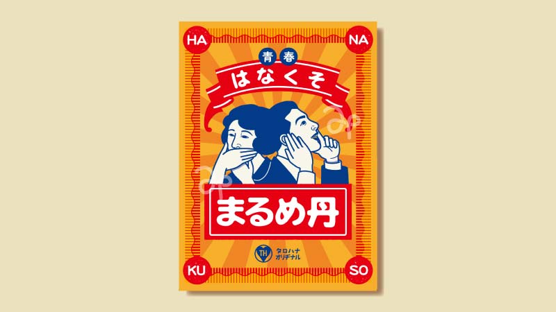 レトロな薬袋のパロディデザインです。うれしはずかし青春の味。