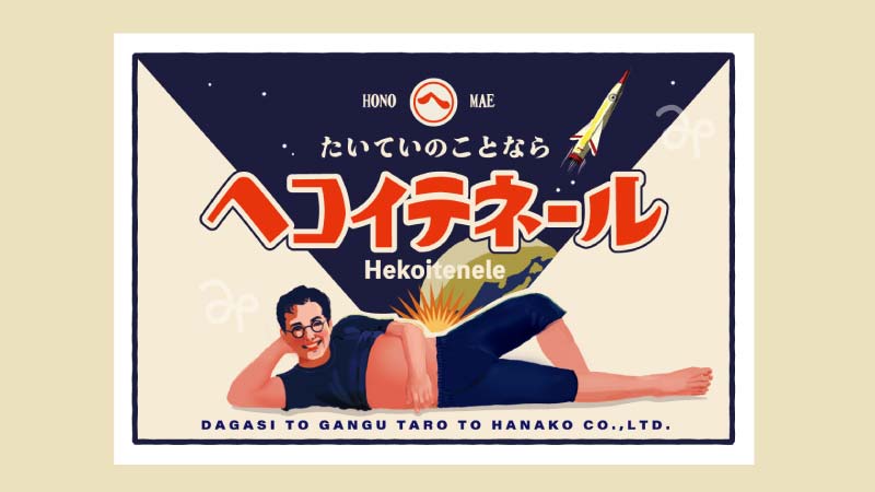 ストレスの多い現代を生きる人々へ。ヘコイテネール、肩の力を抜いて生きましょう〜という愛のエールを往年のオヤジギャグに込めて。